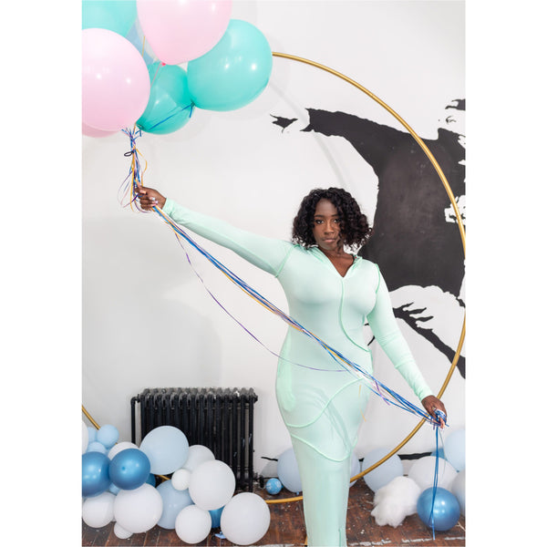 Models wearing white in size small, orange in size large and sea mist in size medium.